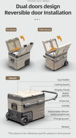 Deze stevig gebouwde compressor koelkast beschikt over de LG compressor. Dankzij deze hoogwaardige compressor bereikt deze draagbare koelkast snel de gewenste temparatuur. Van 20 graden naar 0 graden in 15 minuten. TAW 55 beschikt over een dual-zone. Dit betekent dat je twee aparte vakken een verschillende temparatuur kan instellen. Je kan temparatuur instellen tussen -20 en 20 graden. Je kan zelf bepalen welke vak je gebruikt als koelkast en welke als vriezer.
