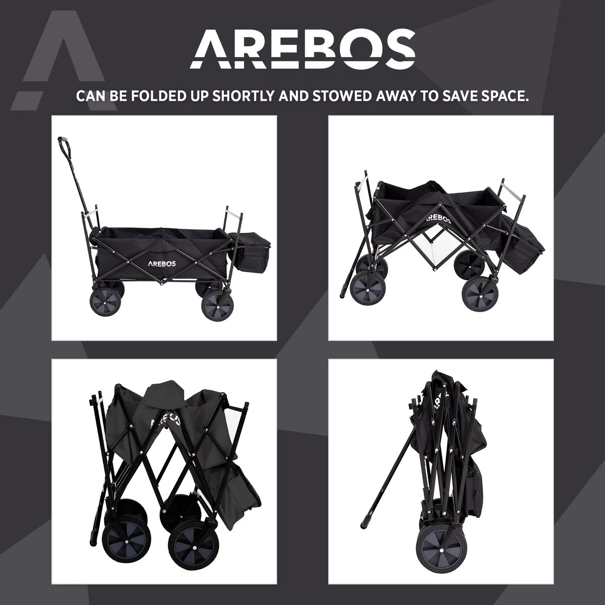 AREBOS Handwagen Vouwbare Dak Handwagen Vouwbare Trolley Uitrustingswagen Zwart