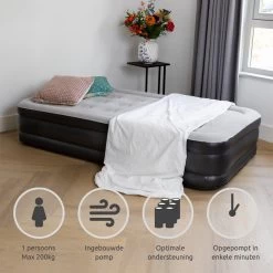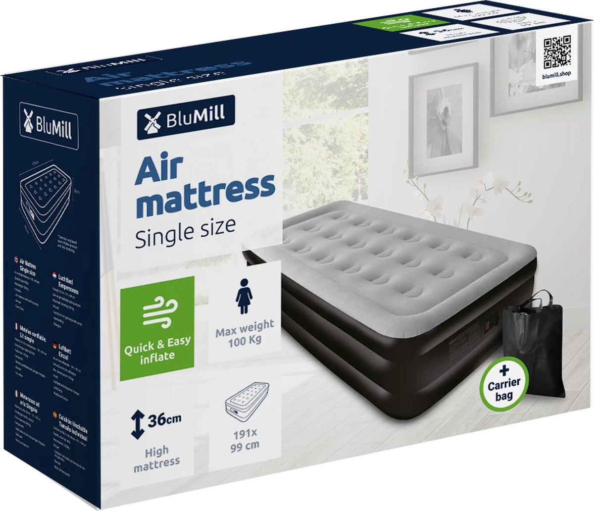 BluMill Eenpersoons Luchtbed – Met Ingebouwde Pomp – Luchtbed Zelfopblazend – Incl. Draagtas – 191x99x36 Cm