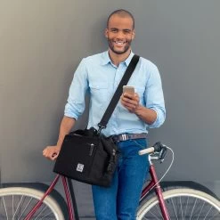 Het draagcomfort wordt bevorderd door twee comfortabele handvatten en de schouderband. Hij is dus gemakkelijk mee te nemen aan je fietsstuur of over je schouder te dragen.