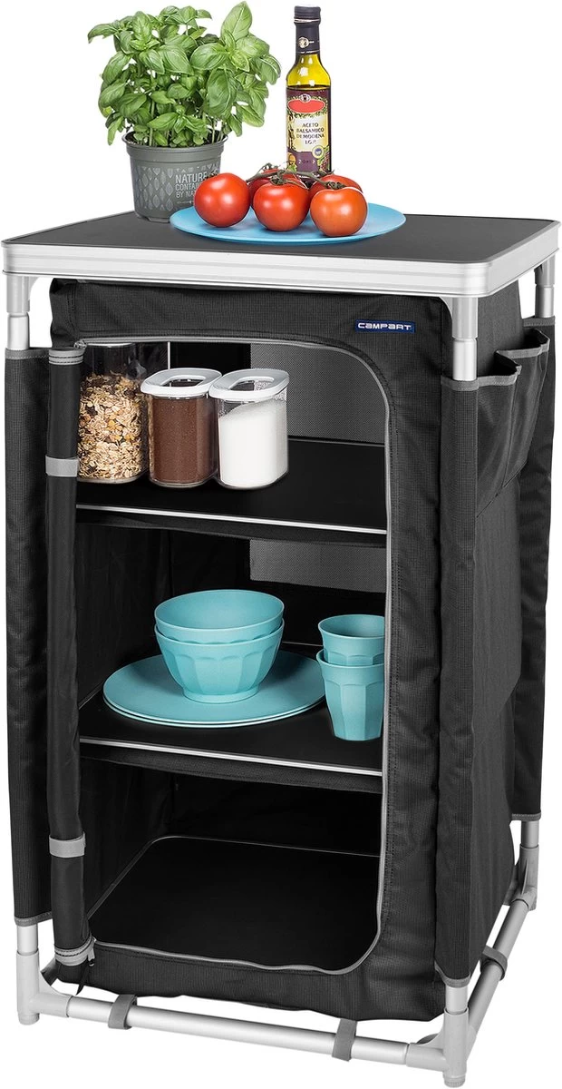 Campart Campingkast CU-0719 – Opvouwbaar En Verstelbaar – 4 Verstelbare Poten – 3 Lagen – Aluminium Frame – Grijs