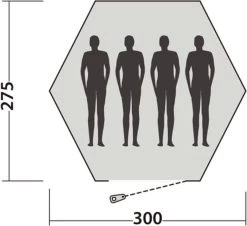 De klassieke, tipistijl tent biedt plaats aan maximaal 4 personen. Hij heeft een veelzijdig enkelwandig ontwerp en een makkelijk op te zetten A-frame met stalen stokken. De mesh deur biedt goede ventilatie. Bovendien zorgen de meerdere scheerlijnen, de getapete naden, een ingenaaid grondzeil en de luifel over de Apex-ventilatie voor praktische beschutting en een comfortabele ervaring. Ook is de tent bestand tegen ruw vakantiegebruik.