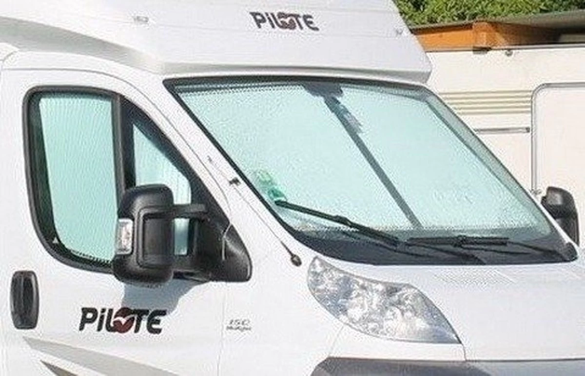Het ideale systeem om de cabine van uw camper snel te verduisteren. Dit systeem past in de cabine van een Fiat Ducato, Peugeot Boxer, Citroën Jumper. Gordijn is wit van binnen en grijs van buiten in plissee uitgevoerd. De gordijnen worden in een grijs frame bevestigd.
