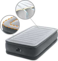 Intex Luchtbed – 1-Persoons – 99 X 191 X 46 Cm – Grijs – Met Ingebouwde Pomp, Hoeslaken Zwart En Reparatieset