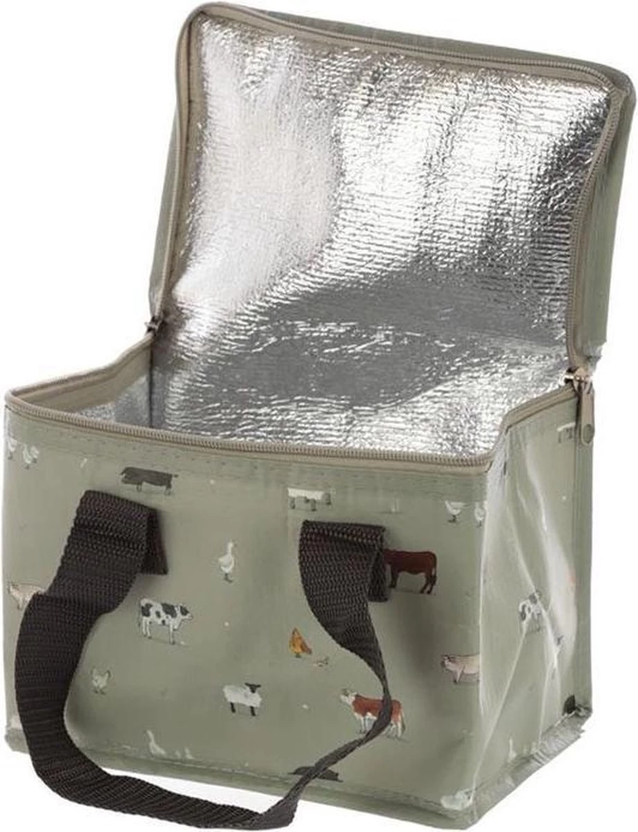 Kleine Koeltas Voor Lunch Grijs Met Boerderij Dieren Print 16 X 21 X 14 Cm 4,7 Liter – Koeltassen