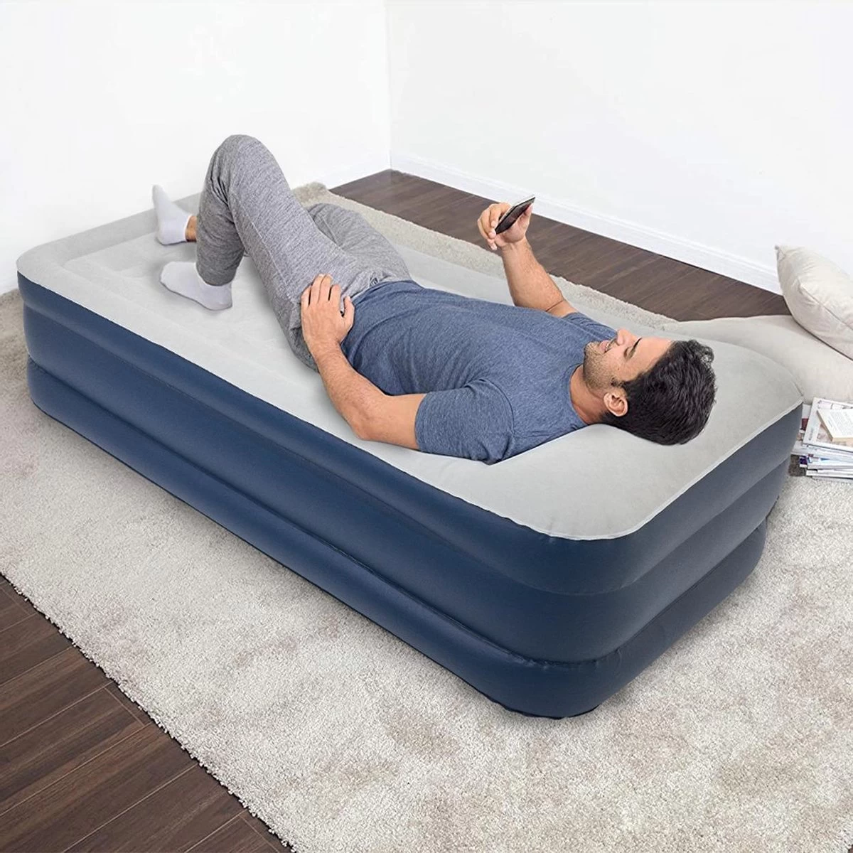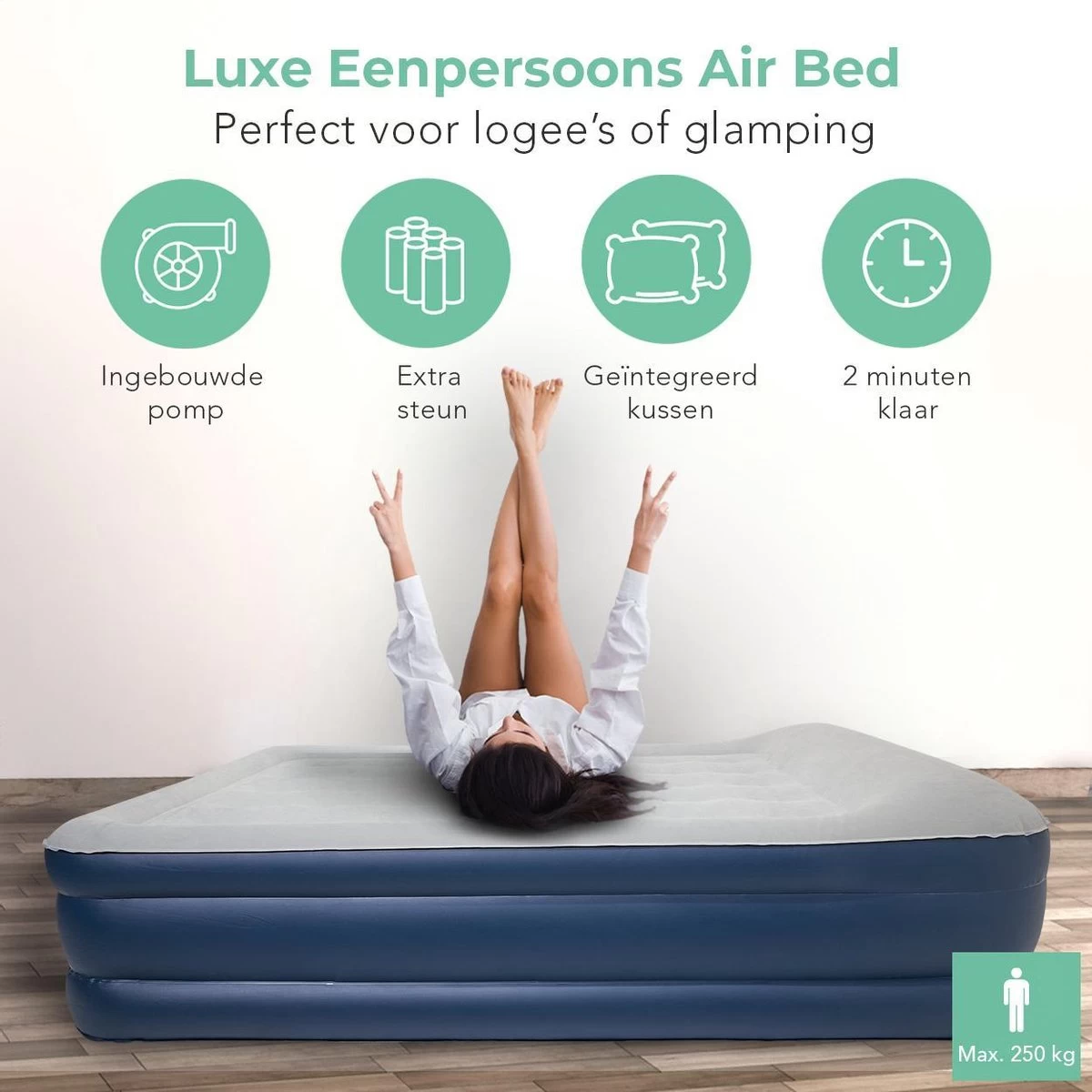 LifeGoods Luchtbed – 1 Persoons – Met Ingebouwde Pomp – Incl. Draagtas En Reparatiekit