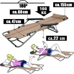 Ligstoel Opvouwbaar 155x60cm – Lichte Ligbed Relaxstoel Tuinstoel Campingstoel Strandstoel