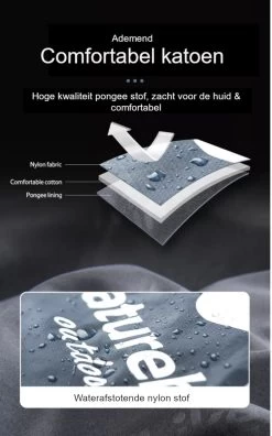 - Buitenlaag is gemaakt van waterdicht nylonweefsel. De voering betreft zijdezacht en comfortabel katoen. De binnenzijde is gemaakt van hoogwaardige pongee lining