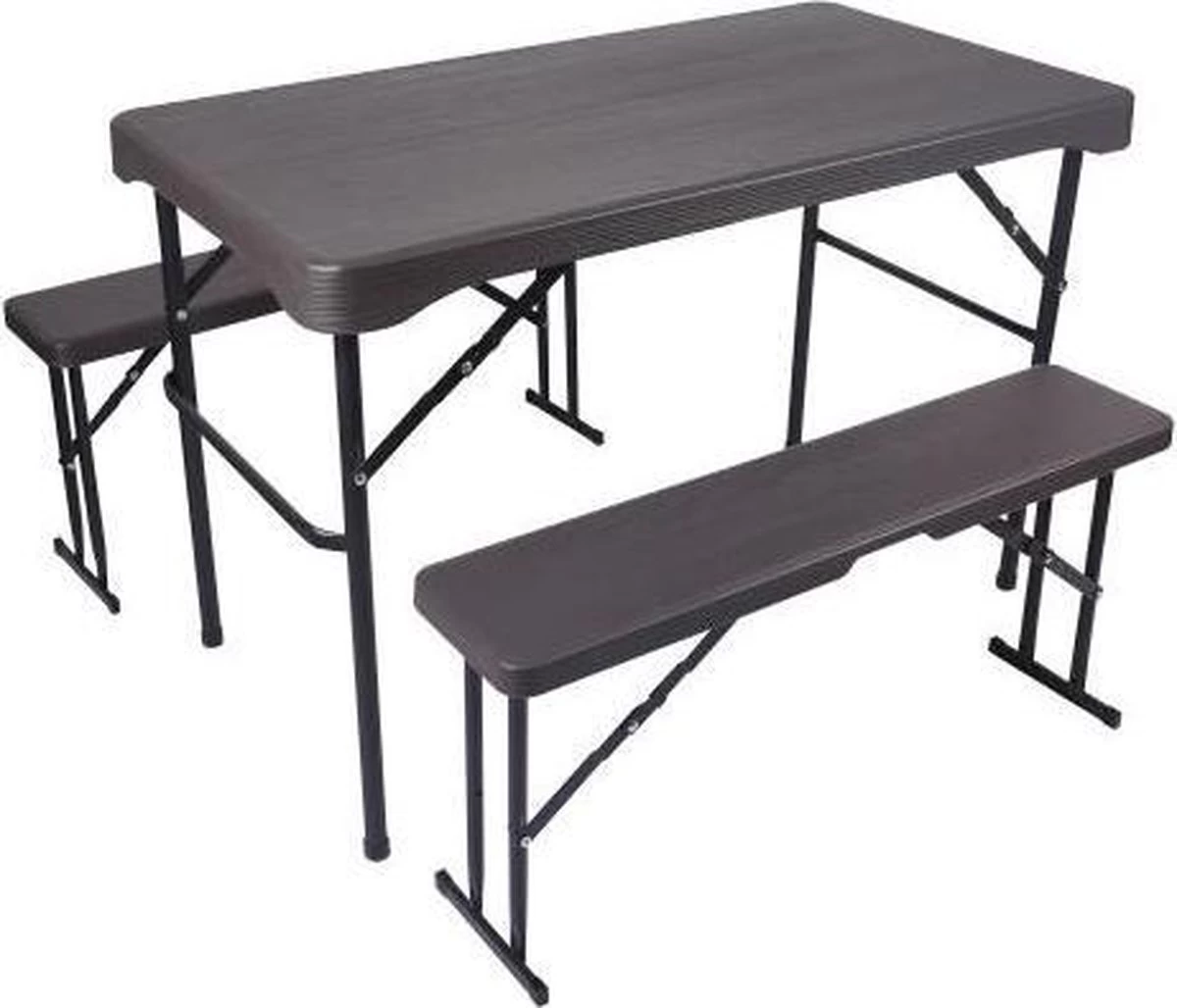 Deze inklapbare campingtafel met banken is onmisbaar voor de kampeerders onder ons. Deze picknicksetje is erg stevig en van zeer hoge kwaliteit. Hij heeft ook een prachtig modern en unieke hout look design. Hij is eenvoudig in te klappen en heeft weinig opbergruimte nodig. Ideaal dus om te vervoeren achterin de auto of om in huis te hebben.