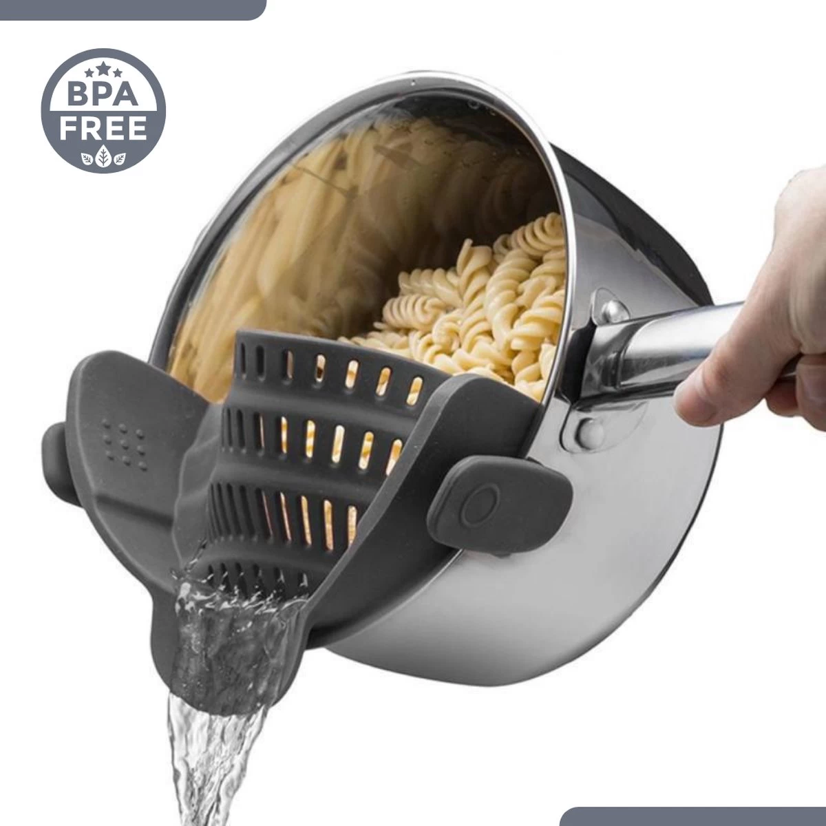 SensaHome- Siliconen Vergiet – Keuken Afgietdeksel – Afgiethulp – Siliconen – BPA Vrij – Grijs