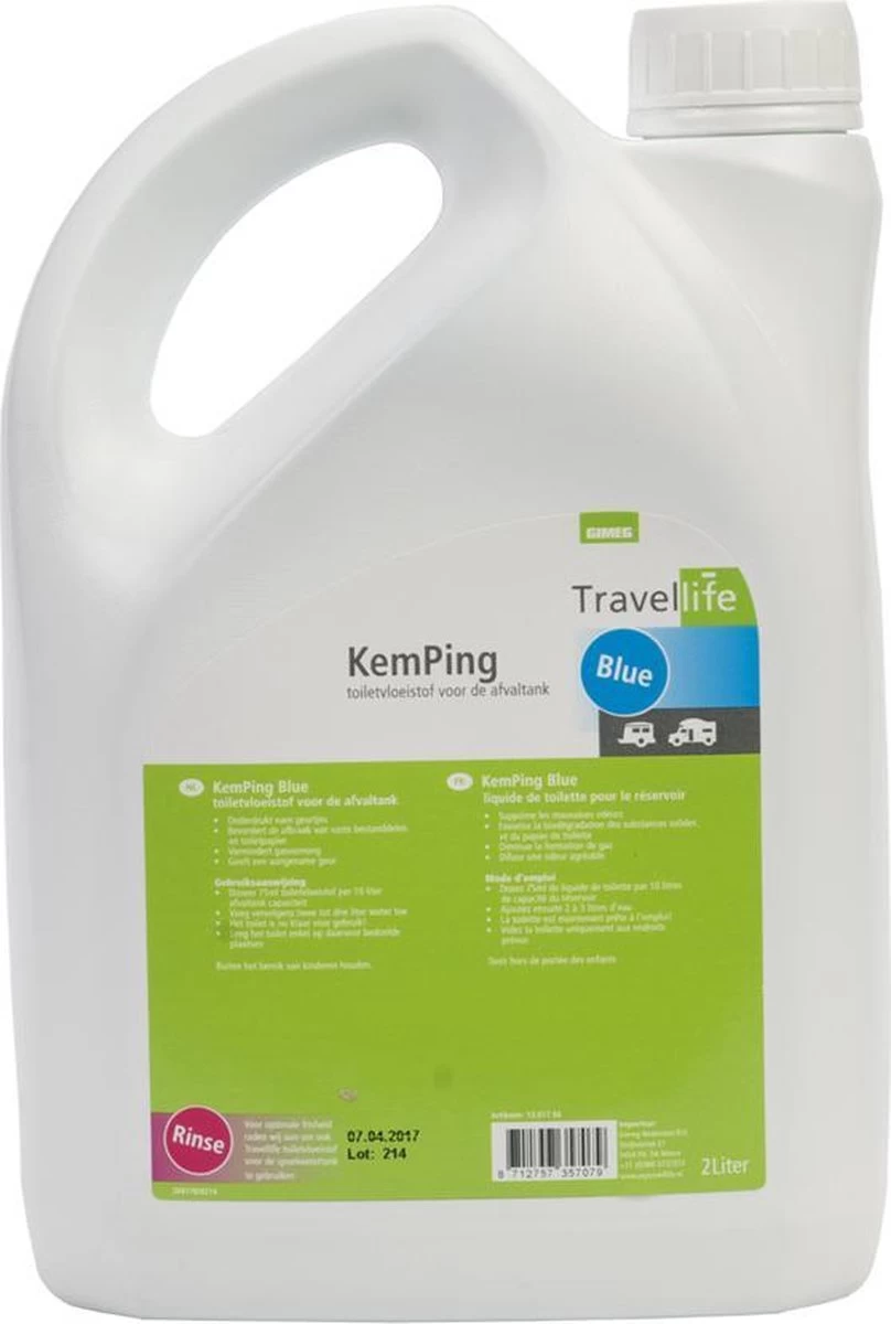 Zoek je een effectief schoonmaakmiddel voor de afvaltank van jouw draagbaar toilet of cassettetoilet? De Travellife KemPing toiletvloeistof Blue is een zeer krachtig middel voor de afvaltank. Hij is eenvoudig te gebruiken op de camping, bijvoorbeeld in je camper, caravan of tent. Dit product heeft een frisse geur, remt gasvorming af en maakt afval vloeibaar. Eén dosering gaat tot wel vijf dagen mee!