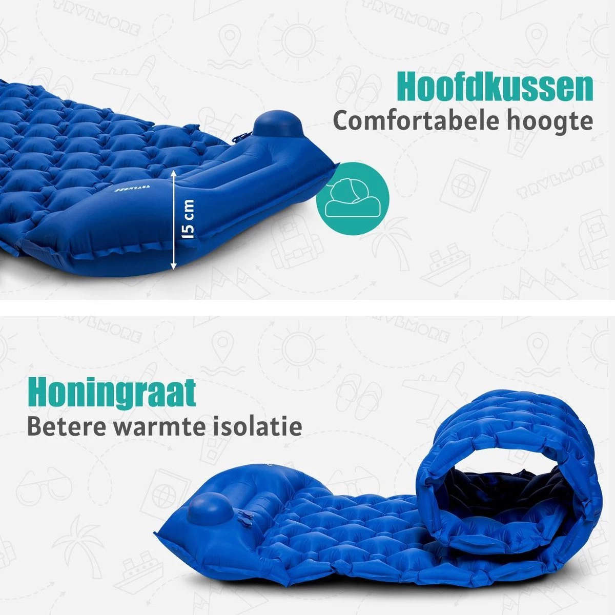 TRVLMORE Slaapmat – Zelfopblazend – 1 Persoons – Ingebouwde Pomp En Kussen – Blauw
